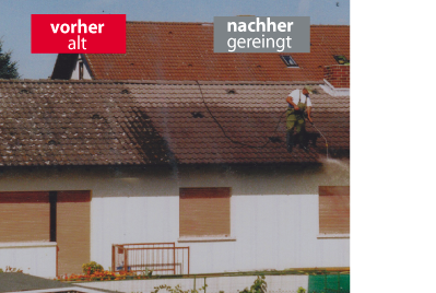 wir reinigen Ihr Dach mit Hochdruck von unschönem Schmutz und Anhaftungen wie Moos, Algen, Pilze,