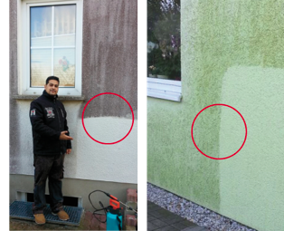 So schön kann Ihre Fassade auch wieder aussehen. Im roten Kreis sehen Sie den Unterschied